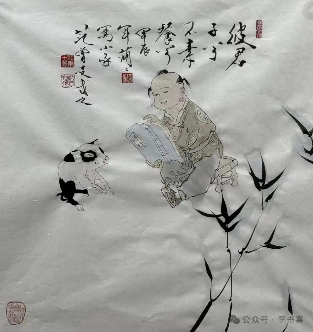 ▲畫作題《君子兮》,并且注明“徐萌畫小豬,范曾補童子、修竹?!?/strong>