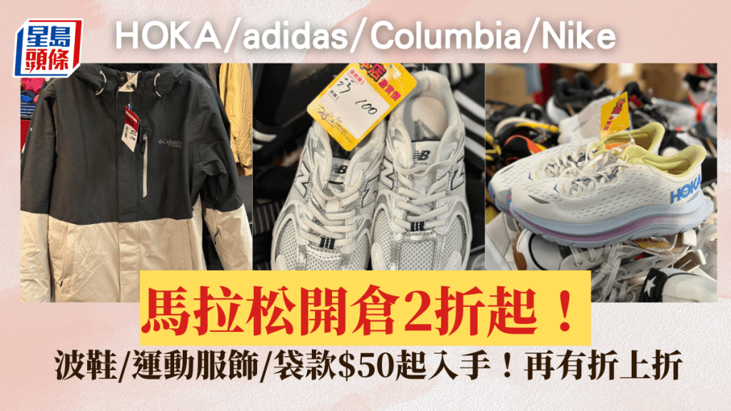 馬拉松再度于銅鑼灣時代廣場展銷集(Times Square Bazaar)舉行開倉優惠,大量球鞋、運動服飾、袋款劈價低至2折,集合Hoka、adidas、Nike、Columbia、New Balance及The North Face等多個人氣品牌,最低$50即有交易,另外更有折上折優惠,記得趁開倉日期入手心水款式!