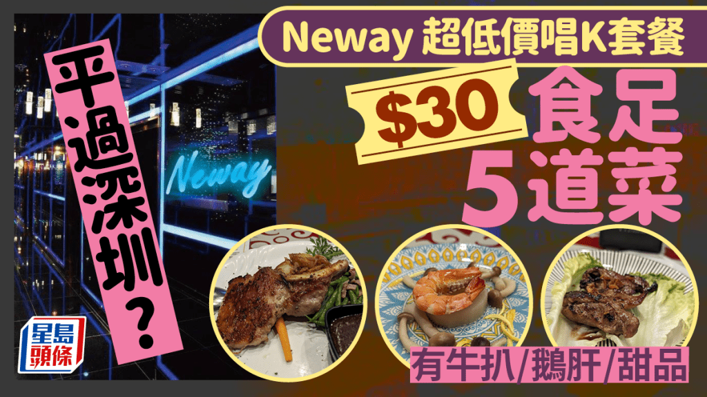 最近有網民在Facebook群組“香港茶餐廳及美食關注組”發文,稱最近在Neway唱通宵K發現一個超抵食套餐,每位$30就可以食到頭盤、餐湯、副菜、主菜及甜品,而且每個項目都會提供不同菜式以供選擇,包括鵝肝牛柳、安格斯西冷及三文魚刺身等。 從照片可見,食物賣相不俗,而樓主亦表示味道“都可以,都算系咁啦唔難食嘅”。