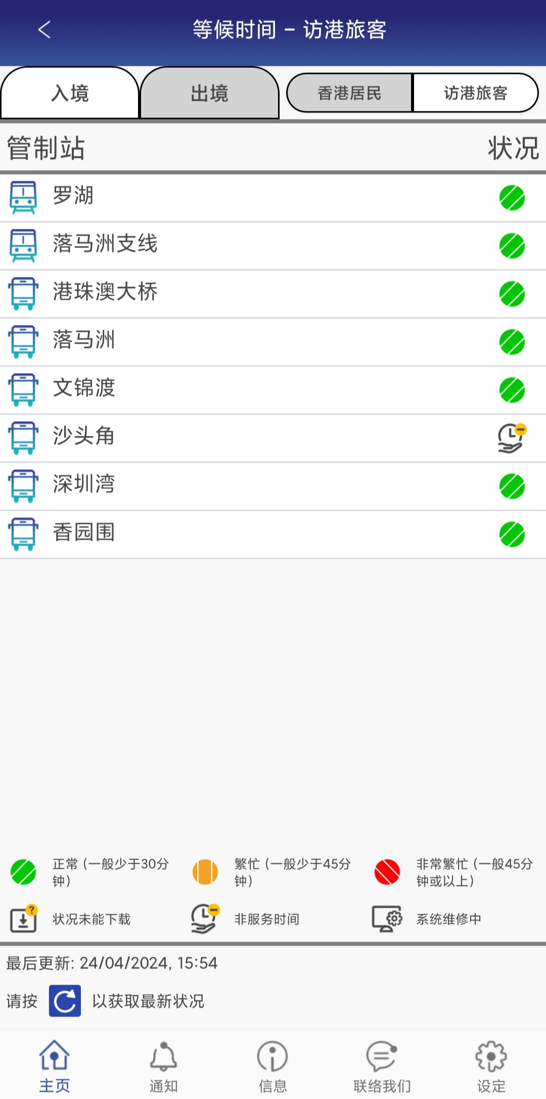 下載APP后,點擊所有服務中的“陸路邊境管制站等候時間”,然后選擇“入境/出境”和“香港居民/訪港旅客”查詢各口岸需等候時間。