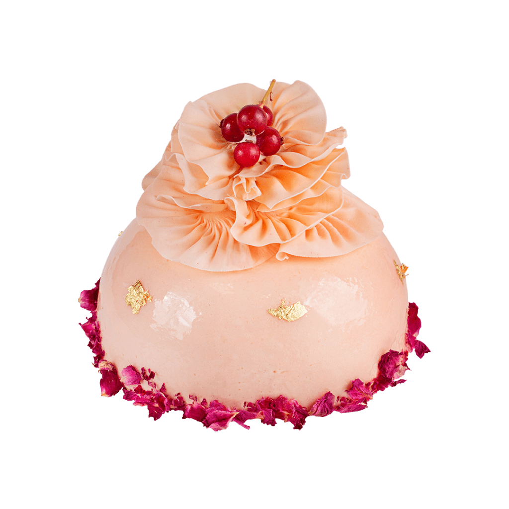 龍島今年以粉色系創作出2款主題母親節蛋糕,“閃爍綻放”白桃伯爵茶忌廉蛋糕,以濃郁的伯爵茶海綿蛋糕配上伯爵茶忌廉,以白桃果蓉作夾心再加入朱古力榛子脆脆餅底,口感有層次又豐富。蛋糕面層鋪滿白桃啫喱及粉色忌廉唧花圍邊,賣相精致。