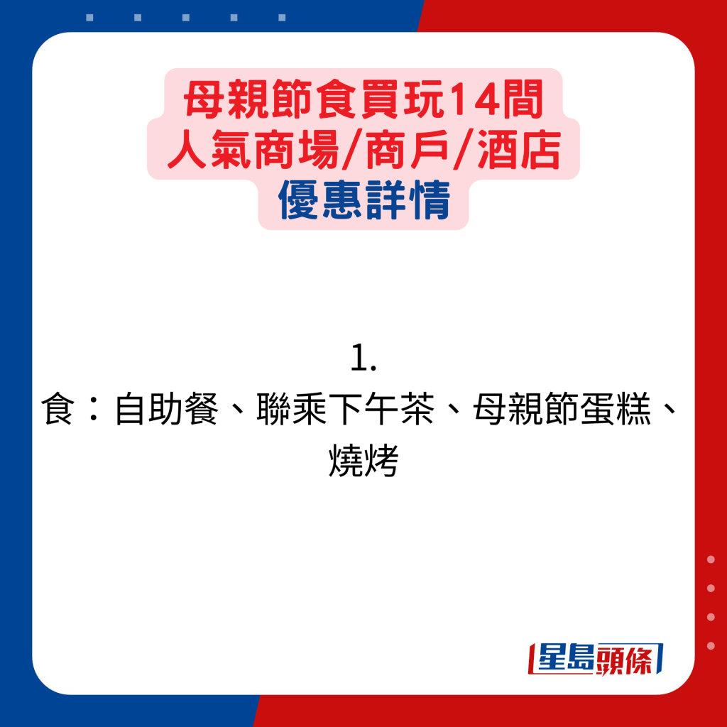 母親節美食優惠|網上預訂自助餐最抵買2送2