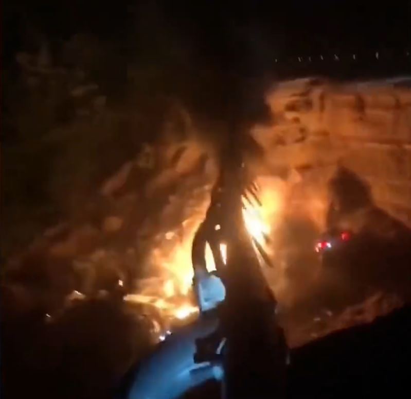 ▲塌陷路段有汽車跌落大坑起火,冒出火光及濃煙。