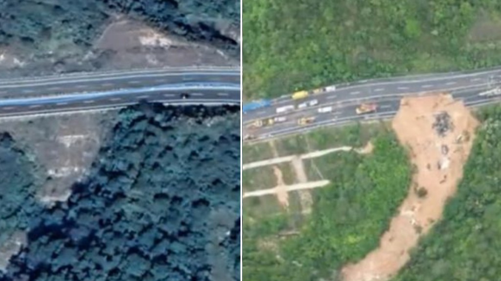 5月1日凌晨,廣東梅大高速茶陽路段發生塌方,至今最少造成48遇難。 透過衛星圖比對,事故后的高速大面積坍方,像是被炸彈轟過一樣,撕裂出一個大坑洞,寸草不生。 長型的大坑被指有17.9米長,下陷的面積大約是184.3平方米。