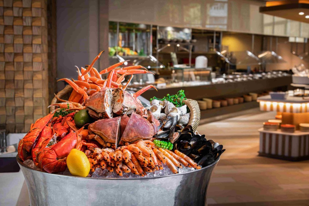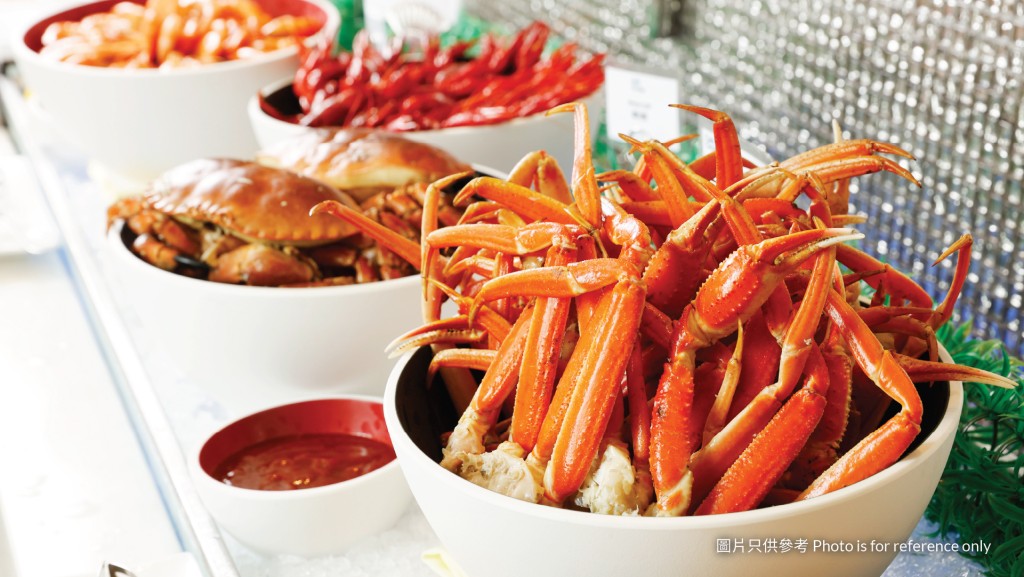 香港康得思酒店The Place味游“鮮”境自助晚餐供豐富冰凍海鮮及海鮮熱盤,除了肥美的龍蝦鉗、藍青口、翡翠螺及熟蝦外,更有時令紐西蘭或美國生蠔、原只開邊龍蝦及面包蟹,大大滿足一眾海鮮迷。晚市大受好評的蒸氣海鮮區則繼續供應鮮味無窮的鮑魚、海蝦及扇貝,還有其他海鮮菜式,如避風塘炒大蝦、明太子焗扇貝和酥炸生蠔,加上精選雜錦刺身、壽司、卷物、冷面及精致日式前菜,以及即切的烤美國牛肋骨、厚煎鵝肝等,絕對大滿足。而甜品則有法式伯爵茶杏仁黃金磚、焙茶焦糖燉蛋、北海道蜜瓜啫喱、港式雞蛋仔,以及8款口味的M?VENPICK?雪糕。而5月11及12日母親節自助晚餐更限定推出花之戀、鵝肝慕絲酥皮盒配無花果醬、日本刺身帶子。