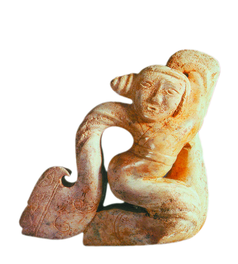 50萬秦軍南下初到嶺南時,他們所見的越人形象充滿了原始而自然的氣息:越人赤腳,常披散著頭發或將頭發梳成椎髻束于頭頂,面部、身上、臂膀、大腿上文有圖案,身著“貫頭式”衣服——一種將布剪個洞、從頭套入的簡易服裝。