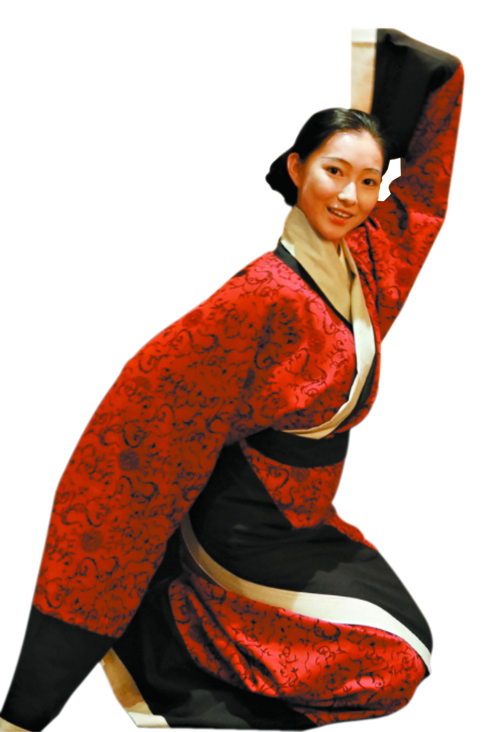 ▲南越王墓講解員復刻館藏文物“圓雕玉舞人”裝扮。(受訪者供圖)