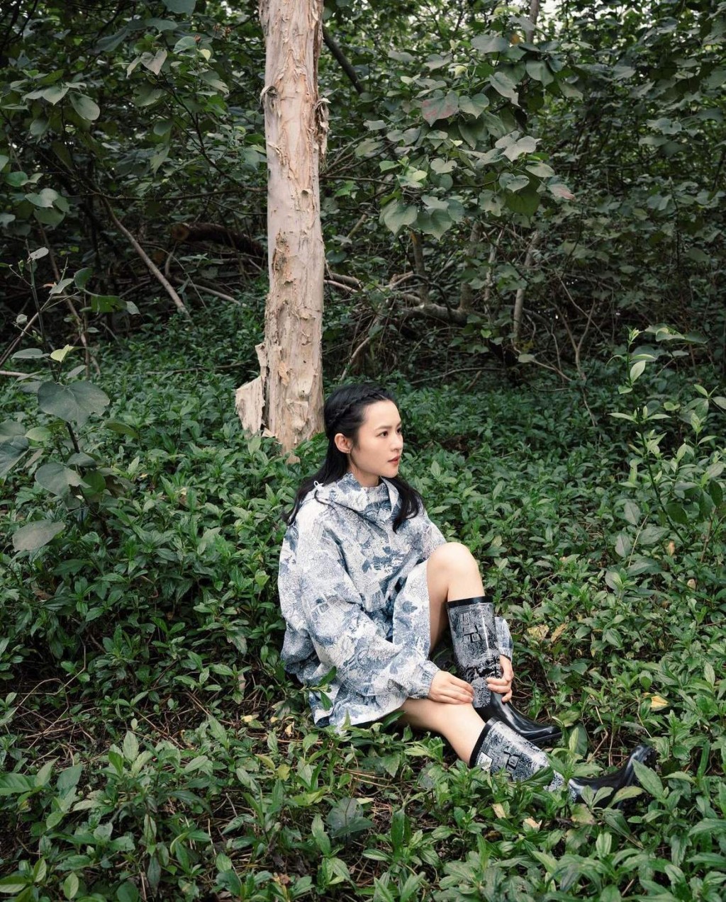▲藝人岑樂怡以Aigle聯乘巴黎國家自然歷史博物館系列防水斗篷/$2,280,配搭同系列橡膠靴/$1,180,塑造Total Look造型。 (圖片來源:lokyi_mui@Instagram)