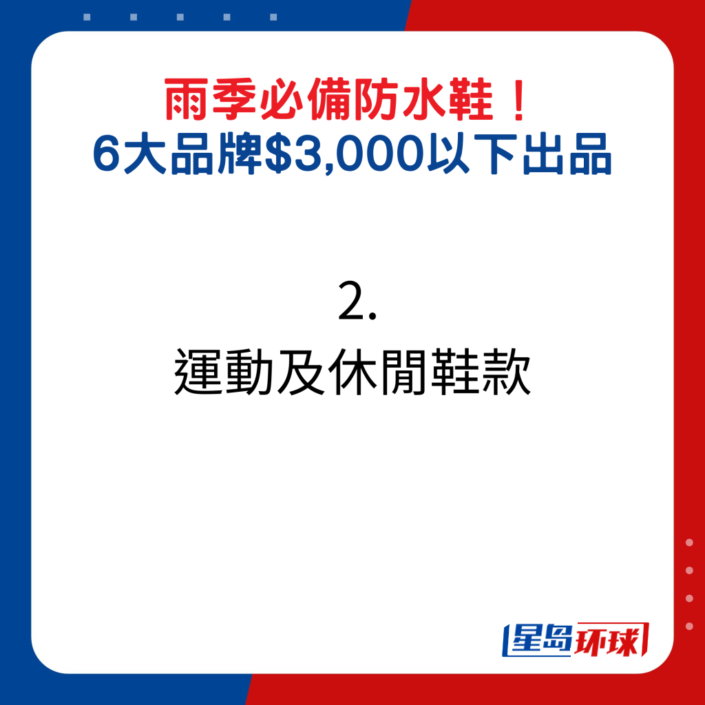 雨季開始,必備一對防水鞋,時下新設計不單止著重功能性,款式選擇亦多元化,當中的型格短靴款及運動休閑鞋款都是大熱,適合上班或假日穿襯,今年夏天不妨添置一雙。