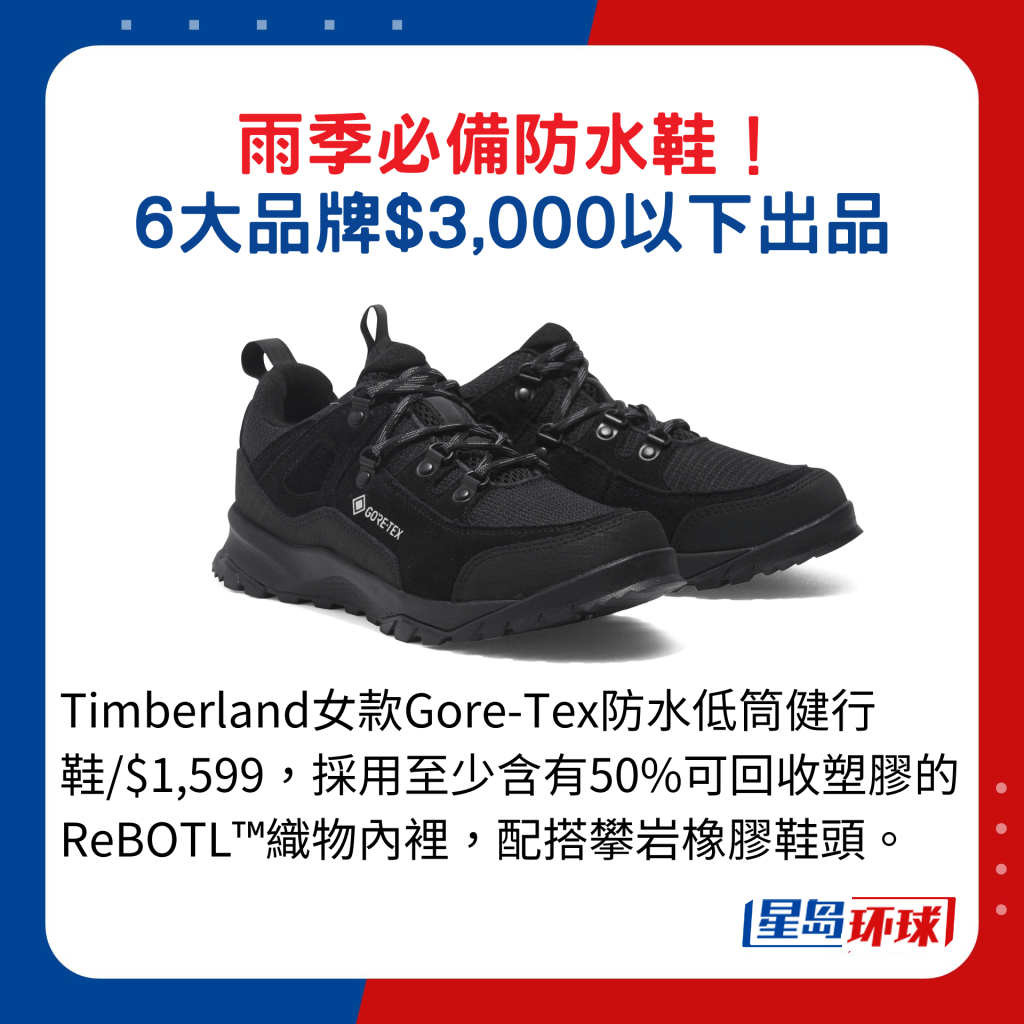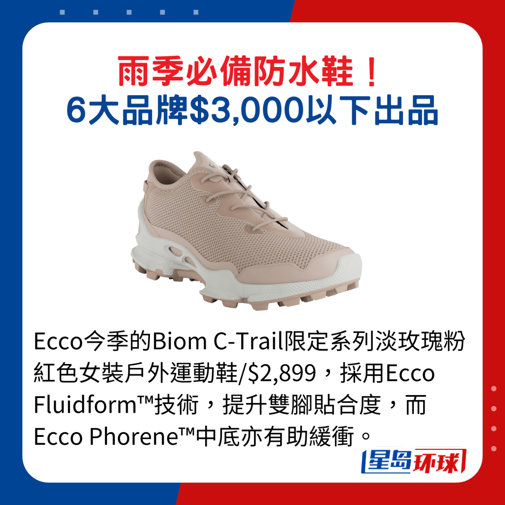 具防水功能的運動鞋款最百搭,丹麥鞋履品牌Ecco的Biom C-Trail限定版系列男女運動鞋,鞋面以針織拼皮革素材制作,且配合Gore-Tex防水防風技術,令雙腳在風雨下仍可保持干爽。 另配以品牌專利的Fluidform技術,有助提升貼合度,增加穿著時的舒適感。Timberland新推的Night Hike別注系列同樣將Gore-Tex防水技術結合防水皮革及網布鞋面,配搭反光細節、模壓Eva中底與橡膠凸紋外底,型酷的黑色外形兼具功能性,下雨天天穿著也不怕弄污。