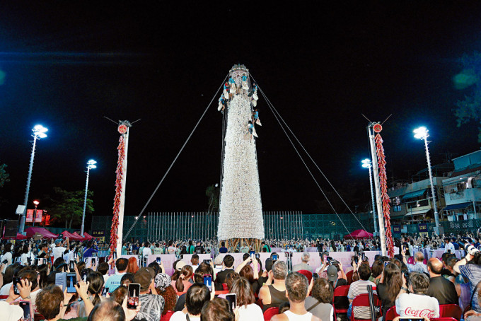 ▲太平清醮重頭戲搶包山比賽吸引約1600人入場觀賞。