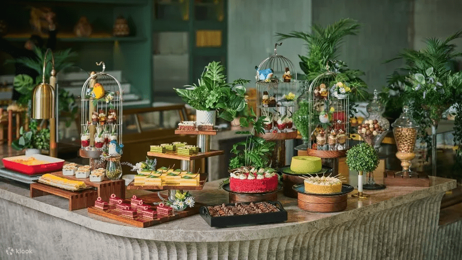 富麗敦海洋公園酒店自助餐廳星耀廳Lighthouse Café亦設有綠色綠色輕怡半自助午餐,以新鮮水耕菜入饌,提供多款清新怡人的健康菜式,讓大家一嘗于“從農場到餐桌”的綠色餐飲體驗之中。 精選主菜包括蘑菇燴牛臉頰肉 / 意式火腿燒春雞 / 慢煮香烤八爪魚海鮮燴飯 / 意式焗烤千層茄子; 另外可任食各款冰鎮海鮮、沙律及前菜、壽司及漬物、廚師精選涼菜火腿、芝士拼盤等,亦有是日餐湯配鮮焗面包,與焦糖脆餅芝士蛋糕、櫻花慕絲蛋糕等特色甜品。