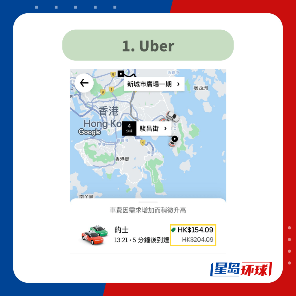 Uber/HKTaxi/高德打車/滴滴出行最便宜是...