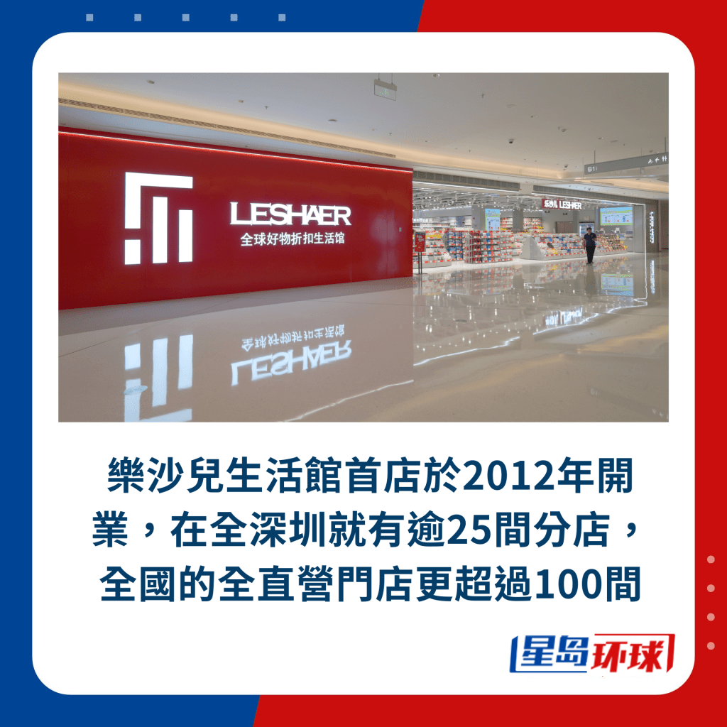 首店于2012年開業的樂沙兒生活館,在全深圳就有逾25間分店,全國的全直營門店更超過100間。主要售賣彩妝、生活潮品、日用百貨、零食、飲品、面食、公仔及玩具等,除了國內知名品牌外,還有大量進口貨,種類包羅萬有,務求做到“用平價的方式買大牌”。