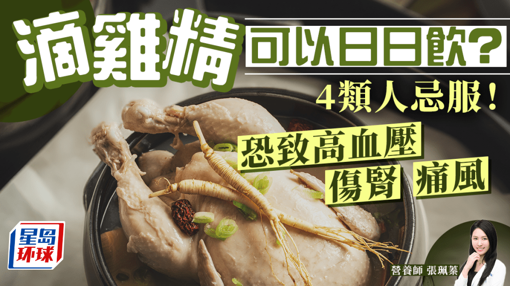 不過,滴雞精的蛋白質含量只有很少,若身體虛弱想補充營養,就不能單靠飲用滴雞精,而是需要另外攝取蛋白質。 她亦提醒,有4類人切忌每日喝滴雞精,否則可能導致補身變傷身!