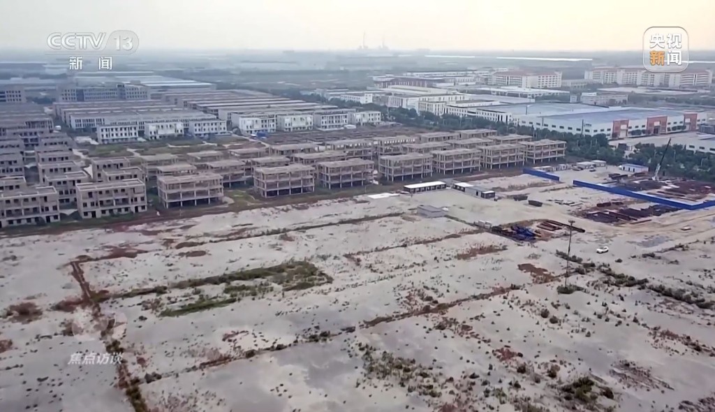 ▲央視報道指,天津市濱海新區有占地37萬平方米的工業園爛尾。