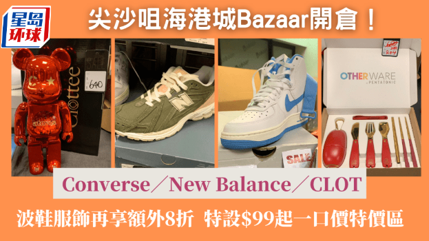 尖沙咀潮牌開倉|尖沙咀海港城展銷集今期舉行名牌家品及服飾大特賣,由即日起潮流波鞋、帽子、服飾進行開倉大激減,多款人氣Converse、New Balance、Nike、adidas鞋款特價發售,同場還有CLOT品牌服飾潮物2折起,記住開倉日期不容錯過!