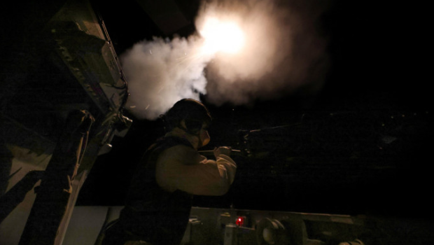 ▲美英再次空襲也門胡塞組織目標,圖為英國軍艦今年3月發射導彈,擊落胡塞的無人機。路透社