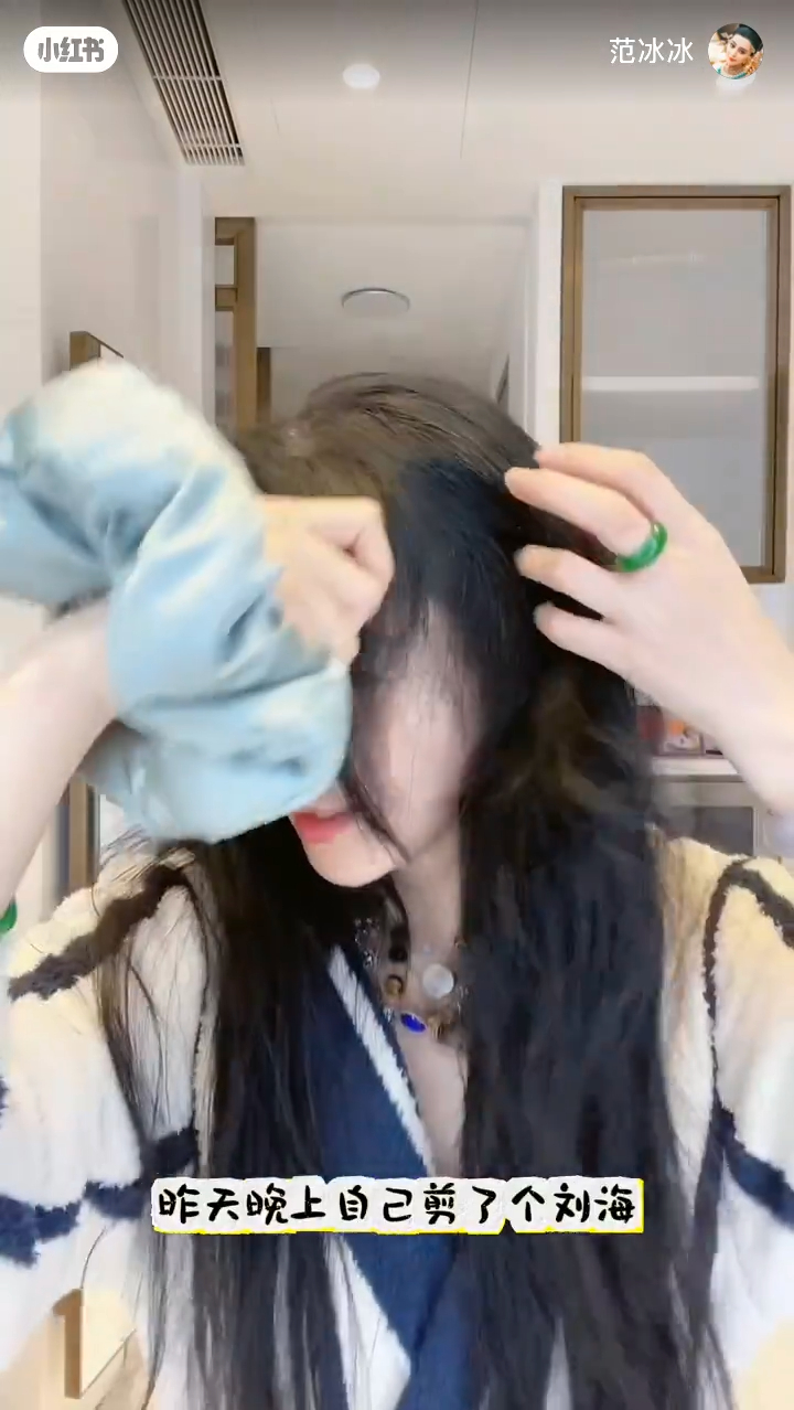 ▲范冰冰在房間整理儀容準備出門,自爆會自己剪瀏海。