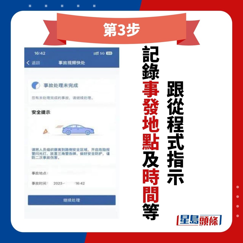 3.跟從程序指示記錄事發地點及時間等。