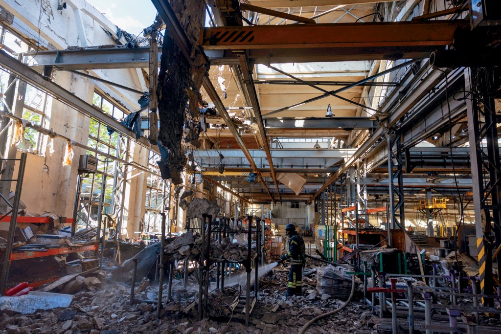 ▲烏克蘭哈爾科夫一間農業設備廠房日前遭俄軍炸毀。