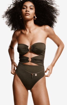 ▲H&M高衩平口連身泳裝/$299,高腰設計配搭金屬裝飾,時尚型格。