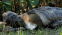 印尼南蘇拉威西省卡倫邦村(Kalempang)發生巨蟒吞人的駭人事件,當地一名45歲婦女外出后失蹤,憂心忡忡的丈夫急忙要求村民協助尋找妻子下落,最終在樹林灌木叢中發現一條長約16呎、腹部異常突起的巨蟒,懷疑失蹤婦人葬身蛇腹。眾人合力殺蟒剖肚后,果然發現失蹤婦人的遺體,畫面令人不寒而栗。