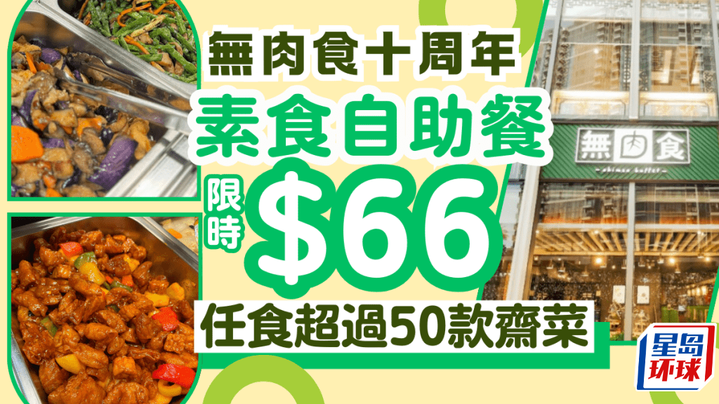 在百物騰貴的時代,一頓經濟實惠的素食自助餐顯得尤為珍貴。 迎接第十周年,素食餐廳“無肉食”特別推出超值優惠,下午茶時段的自助餐僅需$66/位,讓素食愛好者們享受超過50款美味佳食。