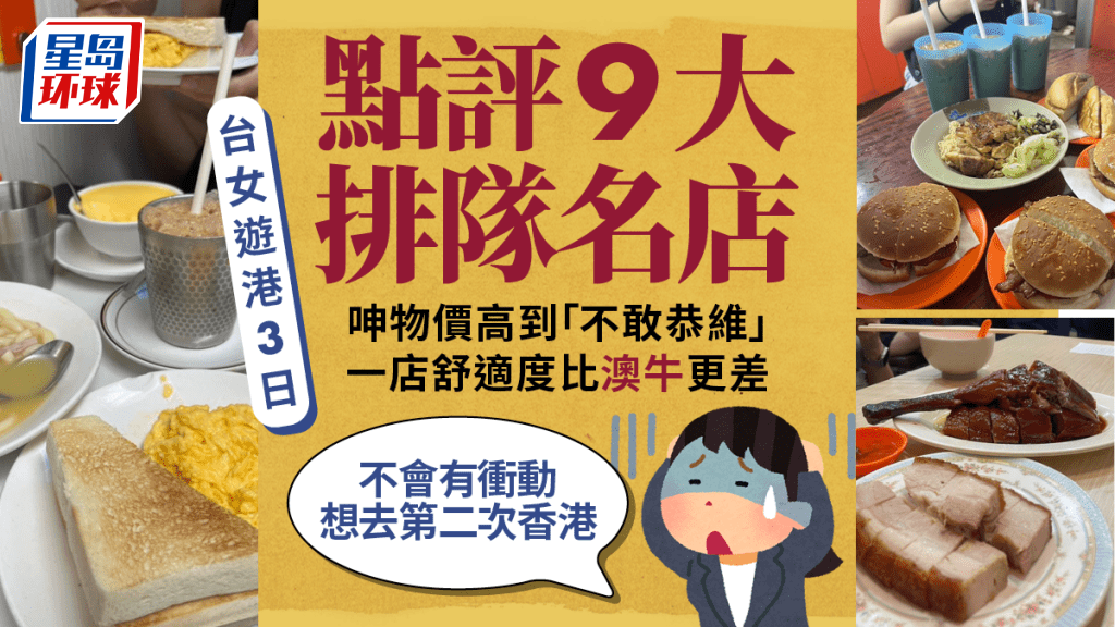 這名臺女在網上討論區以“香港排隊名店分享”為題,發帖分享其上月赴港旅游的經歷。 帖主憶述,在短短三天的旅程中,她走訪澳洲牛奶公司、華姐清湯腩、一樂燒鵝、蘭芳園等九間在香港備受游客熱捧的人龍餐廳,打算一向各款地道美食。