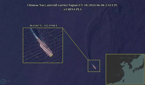 ▲衛星圖顯示,福建艦在海上高速倒行。
