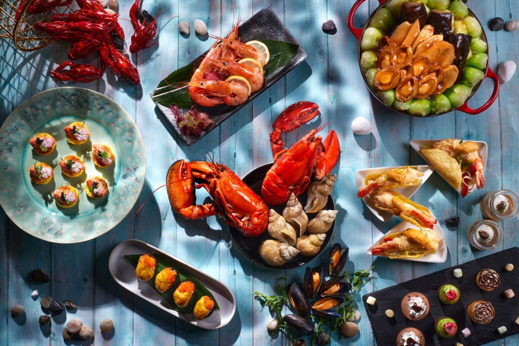 香港萬麗海景酒店萬麗咖啡室的“萬”游海陸自助晚餐精選各式海鮮,如可持續發展新鮮蒸加拿大龍蝦、蟹腳等,鮮味十足;還有龍蝦喇沙、香烤和牛牛肩扒、和牛沙律、東西風味和牛美饌、香烤牛肋骨等多款備受歡迎的熱葷!
