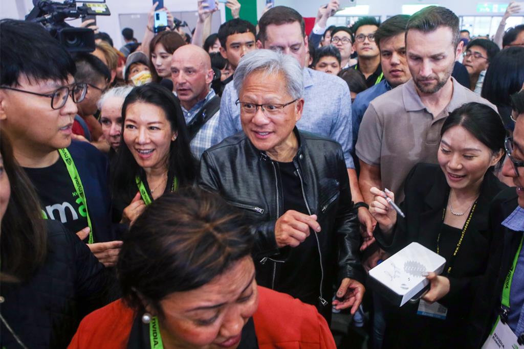 ▲臺北國際電腦展(Computex)日前登場,“AI教父”的英偉達創辦人黃仁勛(中)現身會場逛展,吸引民眾爭相搶拍及簽名。中時新聞網
