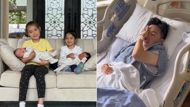 影片中,葉海洋的大女Doris、二女Hatti開心地各自抱著雙胞胎弟弟坐在沙發上,雙手輕柔地托著嬰兒,同時也可發現,2人的表情及眼神充滿溫柔且專注。為此,葉海洋在FB發文寫道:“葉海洋迎來雙重驚喜!喜獲一對雙胞胎寶寶,幸福滿溢全家?!蓖瑫r也附上一段畫面記錄自己的生產過程。
