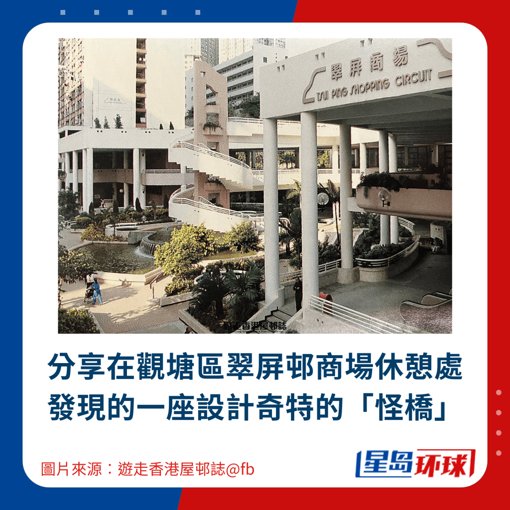 香港公共屋邨早在1950年代中已經出現,經歷逾半世紀后,無論是公屋大廈或其他配套,在外型及設計上都不斷改進革新。日前有網民就在內地社交網站上發文,指發現觀塘某屋邨有條非常奇特的“怪橋”,引來其他人廣泛討論及猜測!有人指它是風水橋,亦有人認為是健身工具。就此《星島》記者向觀塘區議員查詢過設計原因,即看下文詳細解釋!