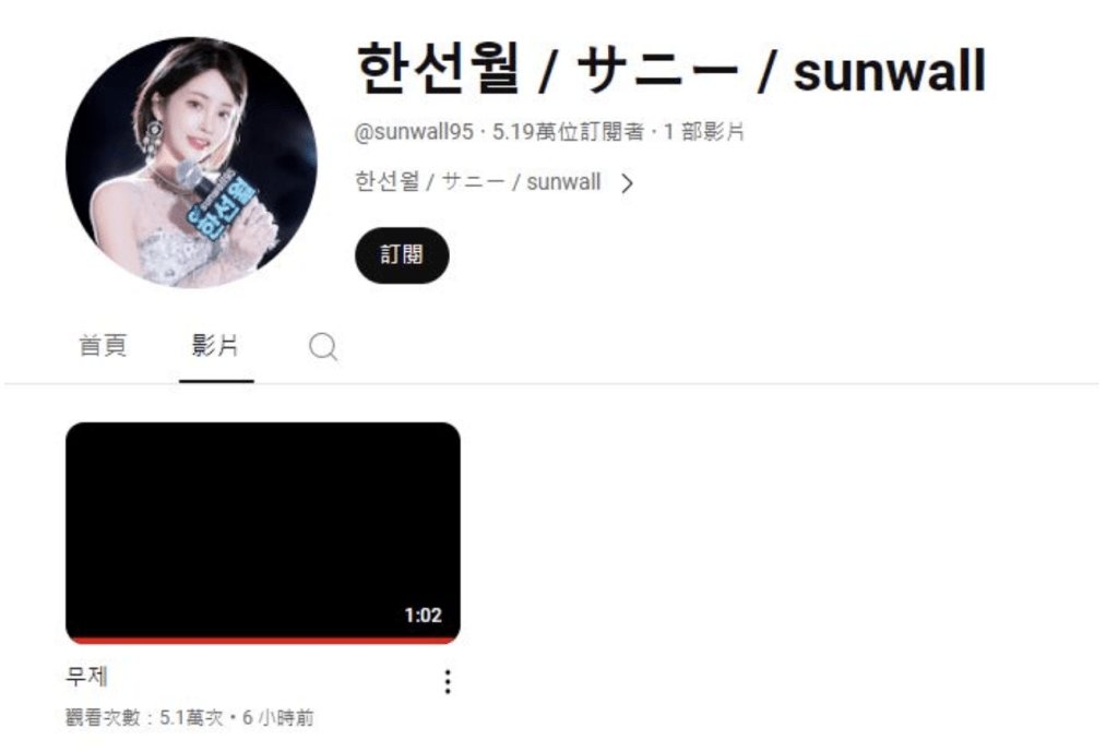▲韓善月離世后,YouTube頻道刪去所有影片,只剩下昨日(26日)上傳的1分2秒全黑影片。