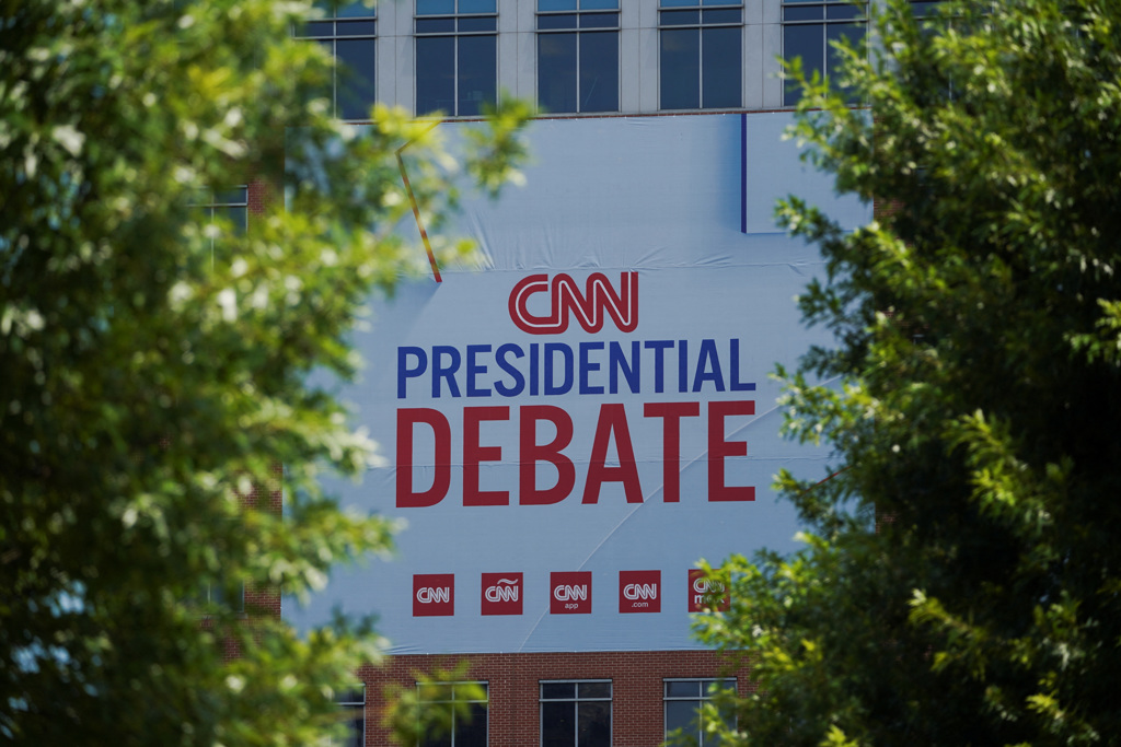 ▲美國2024總統大選首場電視辯論會28日登場,由CNN主辦,直播攝影棚不開放觀眾入場。路透社