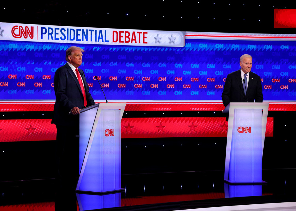▲美國現任總統拜登27日和前任總統特朗普在亞特蘭大舉行首場大選電視辯論。(路透)