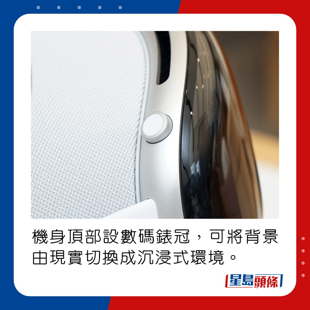 ▲機身頂部設數碼表冠,可將背景由現實切換成沉浸式環境。
