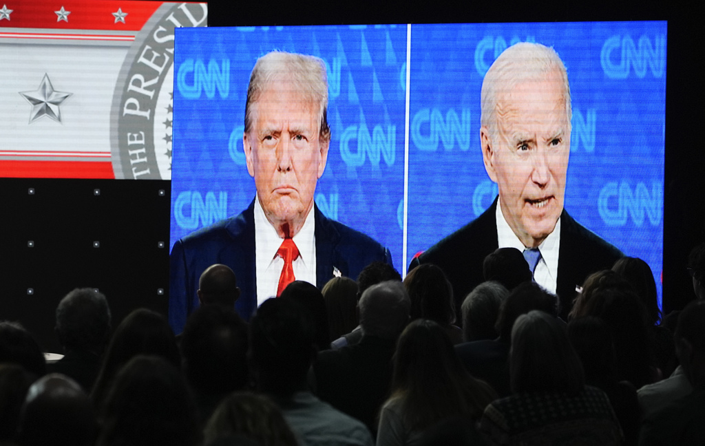 ▲美國2024總統大選首場電視辯論會27日登場,拜登與特朗普激烈交鋒,吸引許多民眾收看直播。(美聯社)