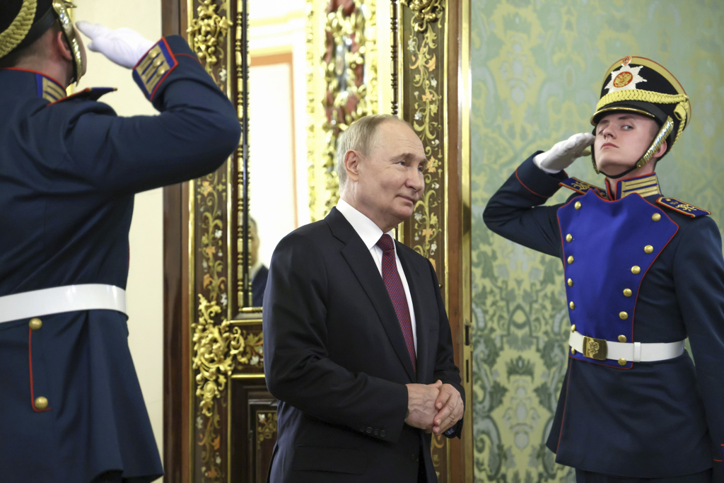 ▲俄羅斯總統普京27日在克里姆林宮露面,準備接見來訪的非洲剛果共和國總統恩格索(Denis Sassou-Nguesso)。美聯社