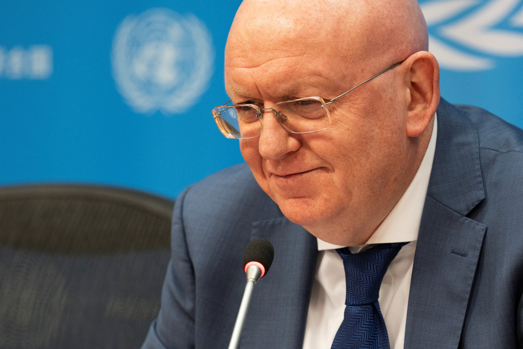 ▲俄羅斯駐聯國大使涅邊賈1日在聯合國總部舉行安理會俄國輪值記者會。(路透)
