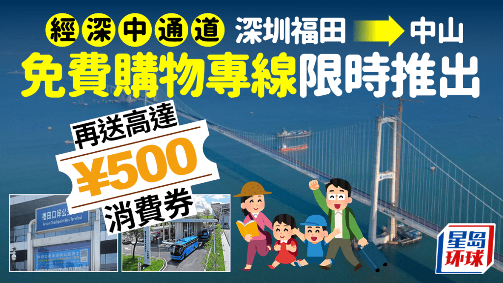 為方便旅客及市民,中山市將由7月5日至28日增設4條免費購物專線,其中1條免費購物專線逢周五、六及日由深圳福田口岸公交總站開出,直達中山博覽中心站。下車后,旅客更可以由博覽中心分別轉乘巴士至中山城區主要商圈,費用全免!