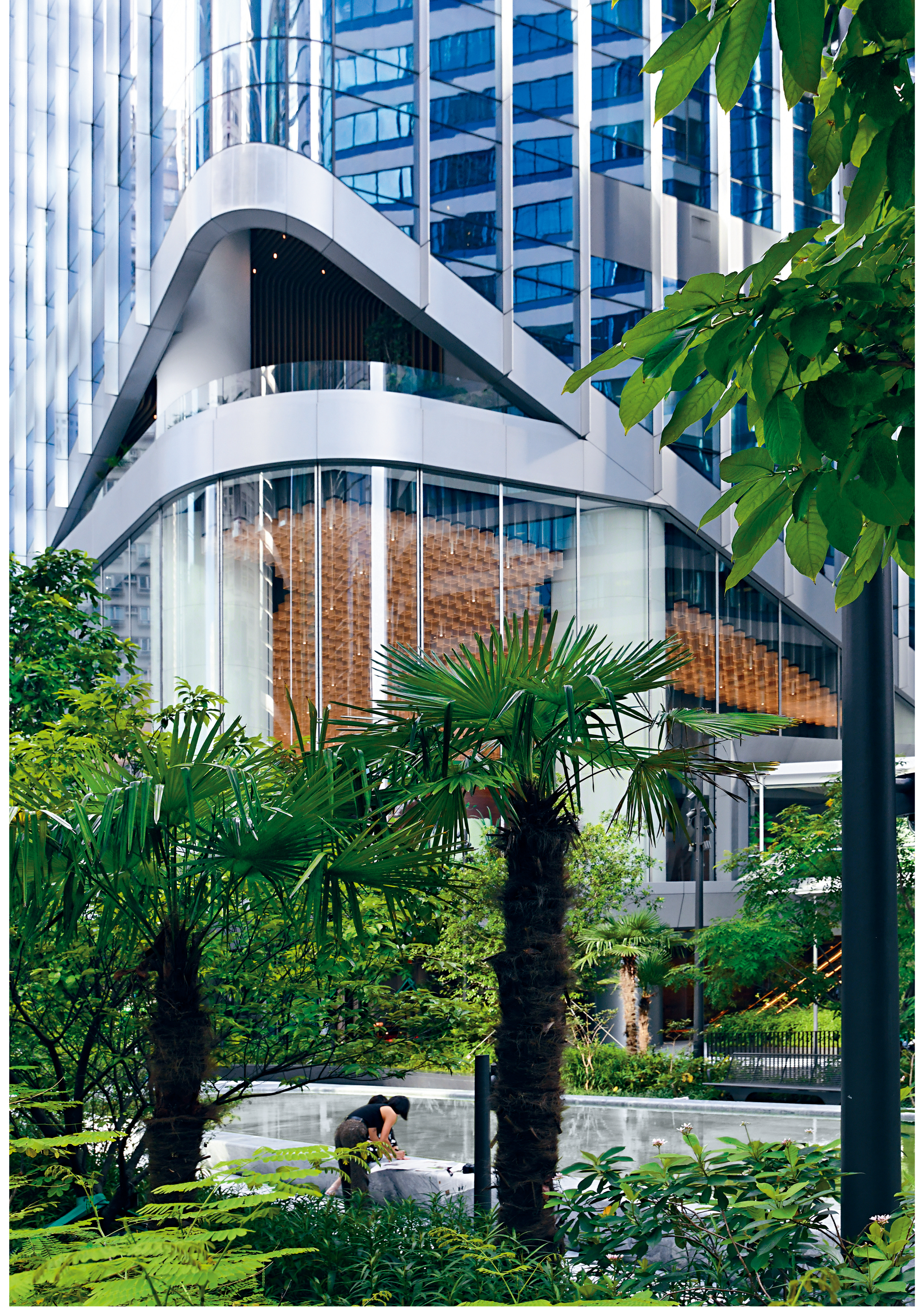 昔日的鲗魚涌船塢,今天蛻變成“太古中央廣場”,廣植本地原生植物和由海外引入的樹種,井然有序地分布,多元而和諧,儼如園林藝術作品,其意涵一如香港,中西薈萃,個性獨特,別處無覓。