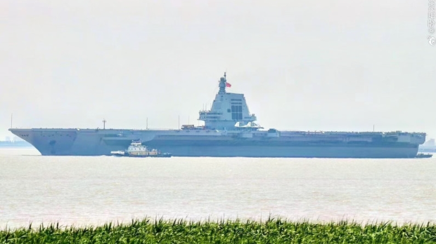 ▲外界估計“福建艦”將在周三再次出海,進行第三次海試。新華社