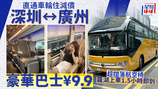 由7月1日開始,“喬巴士”提供深圳往返廣州巴士服務,途經深圳及廣州主要地鐵站,每天逾30班次,大約每隔15分鐘就有一班,車程約需1.5小時,車費需9.9元!從多位網民在社交平臺上載的相片可見,巴士空間非常寬敞,更設“豪華航空座椅”,不過有內地網民提醒,并非所有班次都設有航空座椅,需按運行車型而定。