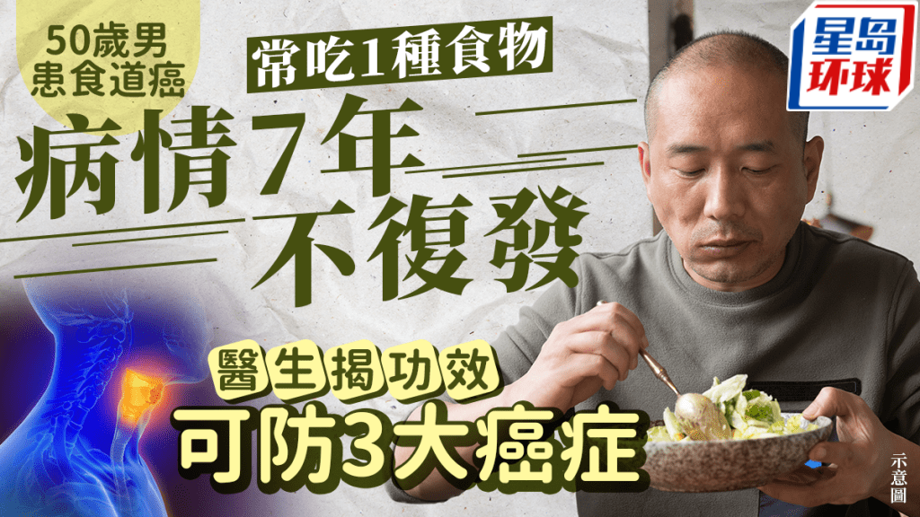 江守山醫生后來建議患者改變飲食習慣,一度推薦他采用地中海飲食法,但患者偏愛中式料理,于是江醫生改為建議他每兩日進食一碟蔥花蛋?;颊呗爮慕ㄗh后,結果成功控制食道癌病情,食道癌在7年內未有復發。