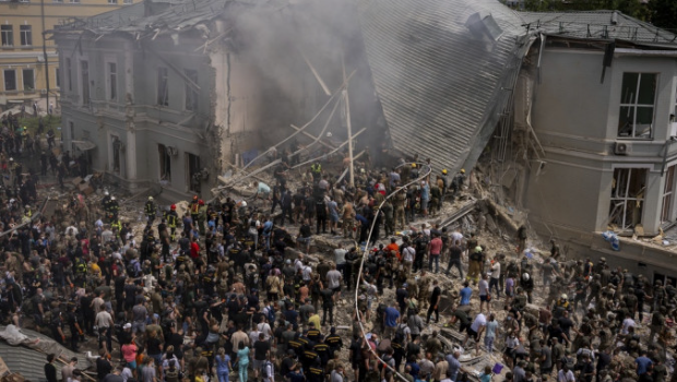 烏克蘭周一包括首都基輔在內的多個城市,遭受多枚導彈襲擊,其中一枚更擊中一間兒童醫院,造成36名平民死亡??偨y澤連斯基稱,烏方將進行報復,呼吁盟友做出堅決回應。