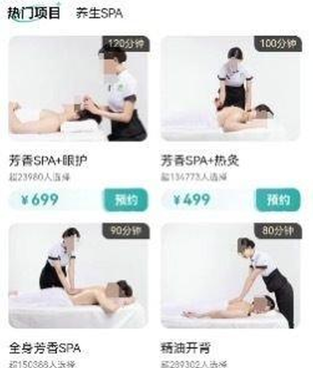 ▲平臺有各種上門按摩服務“芳香spa+眼護”、“芳香spa+熱灸”等。