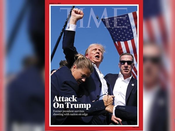 這張經典照在7月14日登上《時代》雜志封面,特朗普過去曾35次登上《時代》封面。