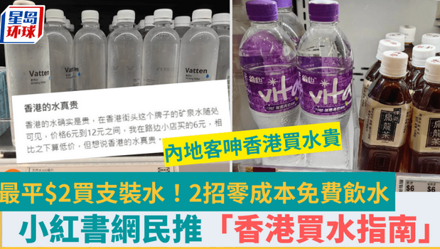 早前有不少內地旅客赴港后,發現香港便利店的支裝水動輒都要港幣10元左右,形容香港是“礦泉水刺客”,甚至表示“來了香港我才知道礦泉水我是喝不起的?!毙〖t書用戶“d同學”不時發布香港的購物優惠資訊,稱看到不少內地旅客在社交平臺大呻香港的水或飲品價格太貴,因此決定整理“香港買水指南”,分為大型超級市場、便利店、連鎖食品專門店等,綜合網友留言,最平$2就可以買到支裝水!